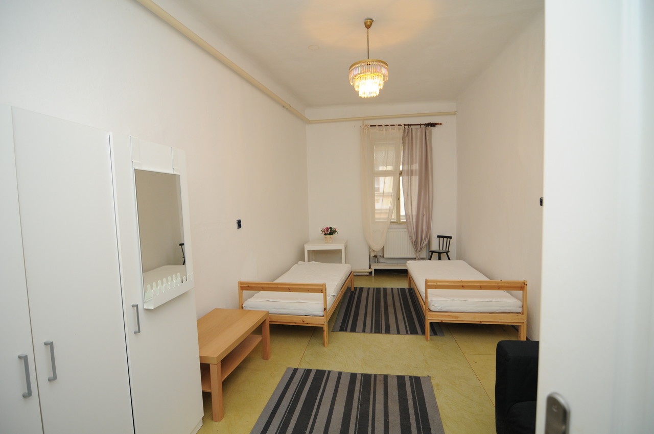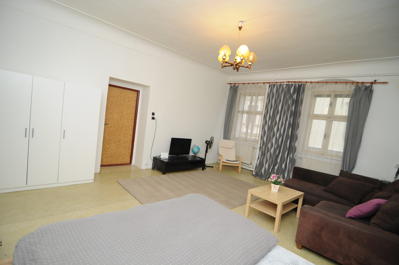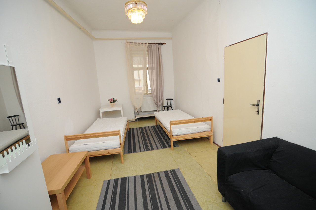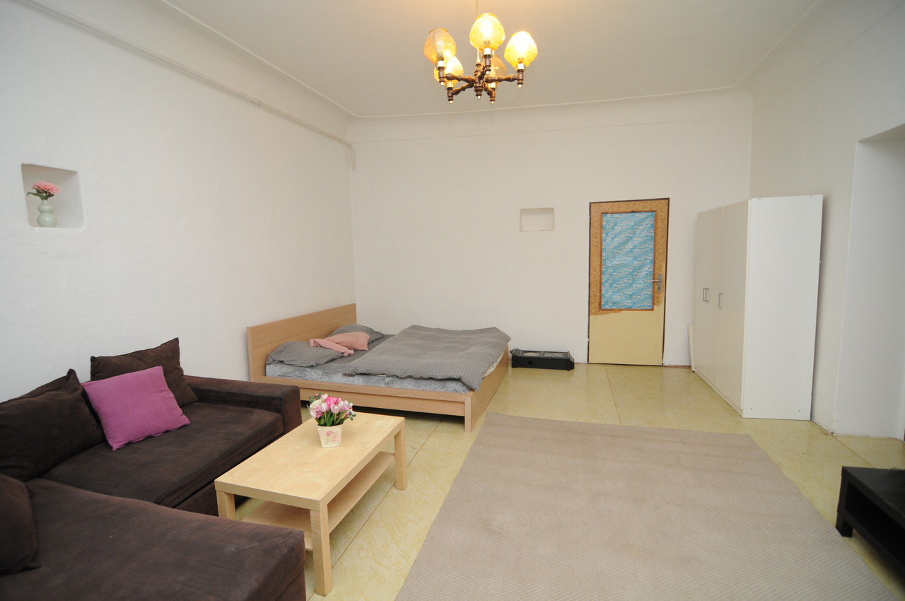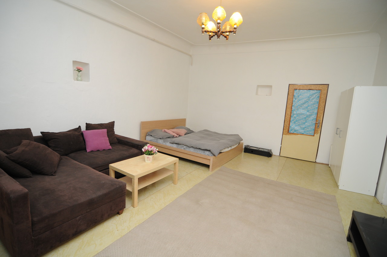 • Obývací pokoj: rohová sedačka, postel, skříň, televize s TV stolkem, šatní skříň, křeslo