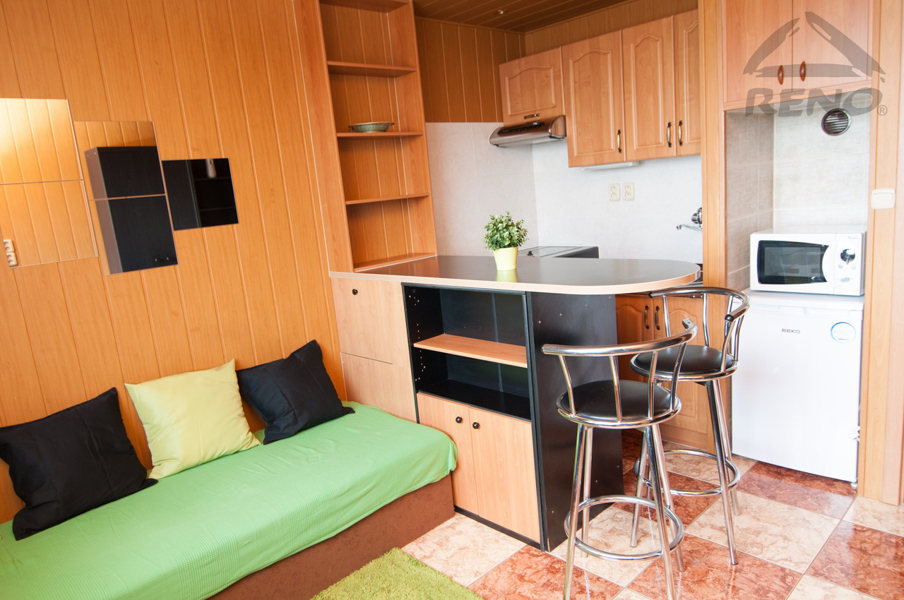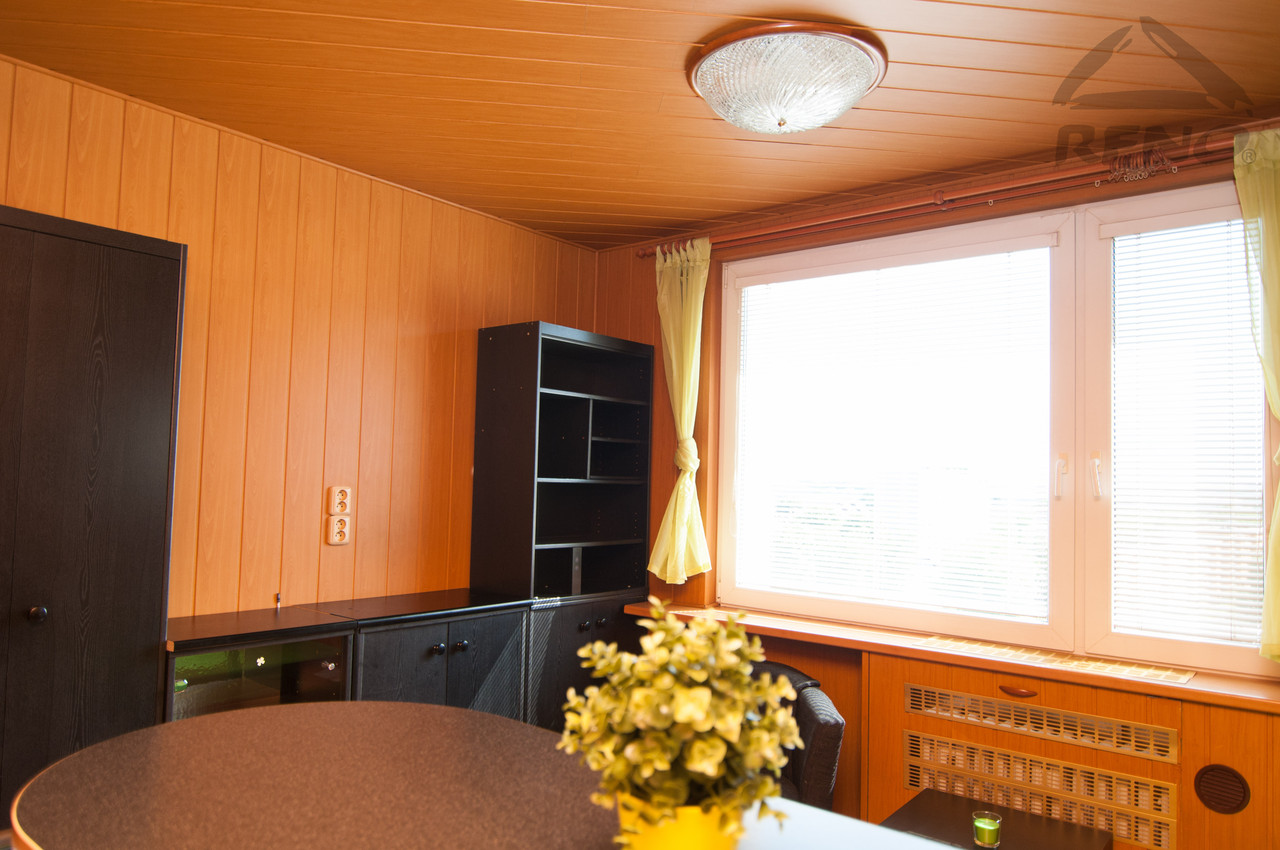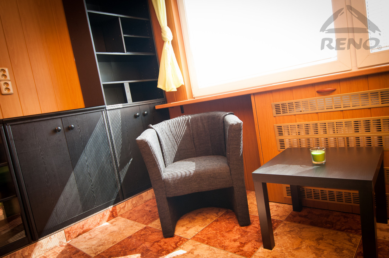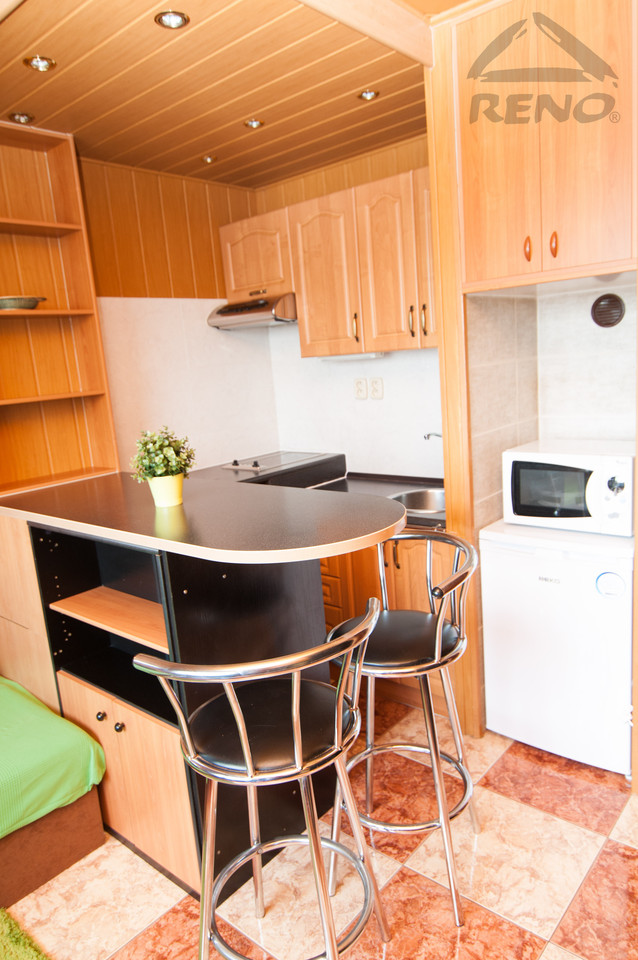 Byt byl v minulých letech rekonstruován, má zděné jádro a plastová okna. V koupelně je vana, umývadlo, místo na pračku, toaleta a vestavěná skříňka. V kuchyni je barový pult s otočnými křesílky, linka s elektrickým vařičem, digestoří, lednicí a mikrovlnou troubou. Obývací část je plně vybavena pohov...